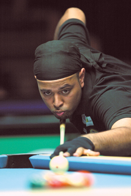 | An undeniable talent with a powerful stroke, Hundal (above) likens his game to that of Earl Strickland. (Photo by Lawrence Lustig) |